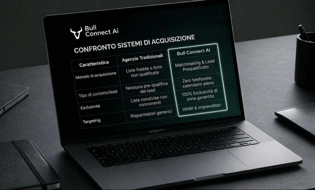 Il nostro sistema elabora migliaia di data-point digitali per individuare imprenditori e professionisti (HNW) nella tua area geografica che stanno cercando soluzioni di protezione o crescita patrimoniale